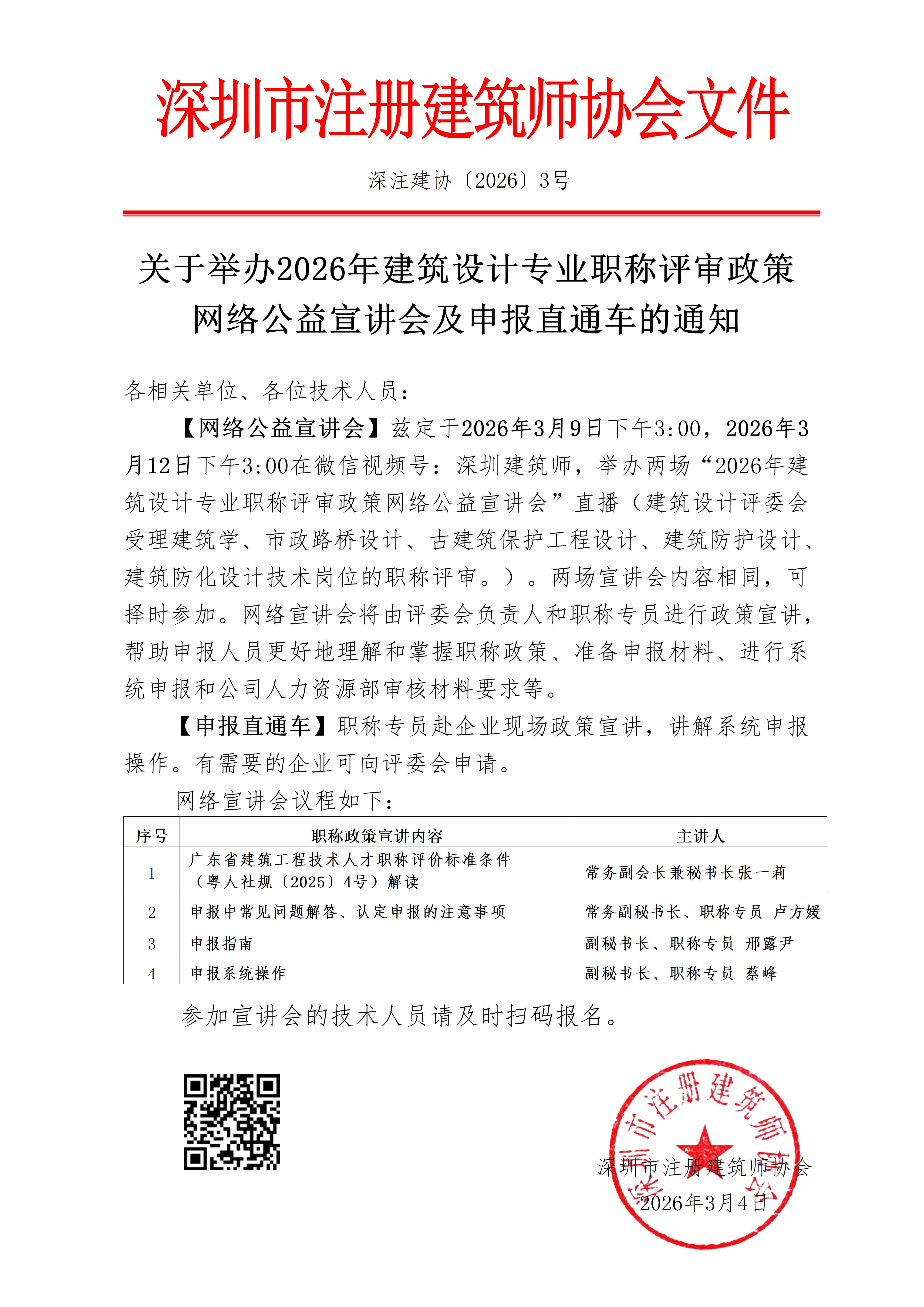 关于举办2026年建筑设计专业职称评审政策网络公益宣讲会及申报直通车的通知