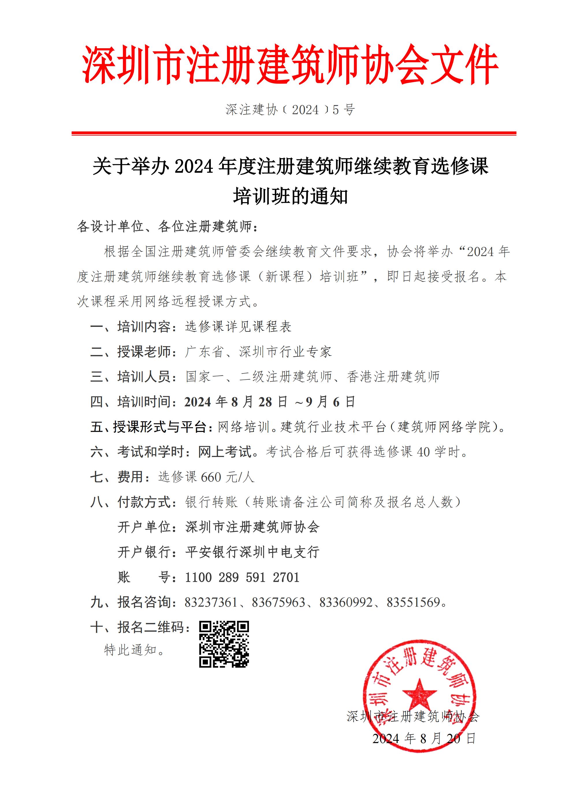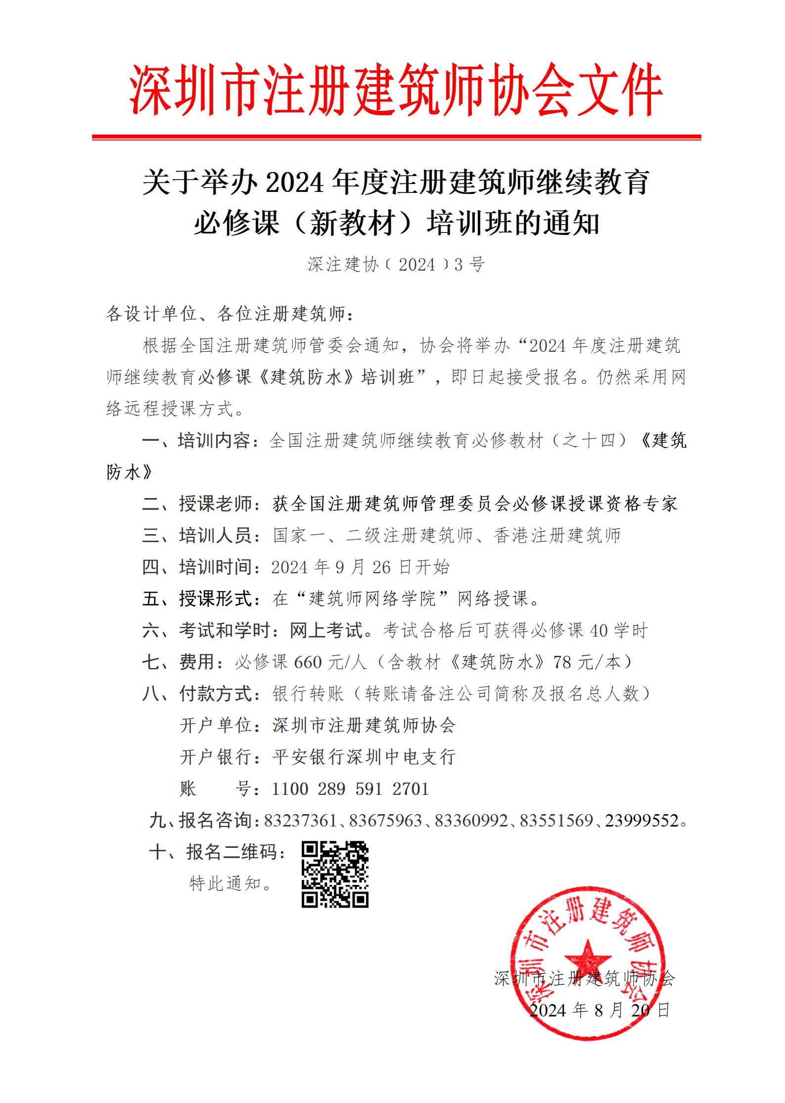 关于举办2024年度注册建筑师继续教育必修课(新教材)、选修课(新课程)培训班的通知