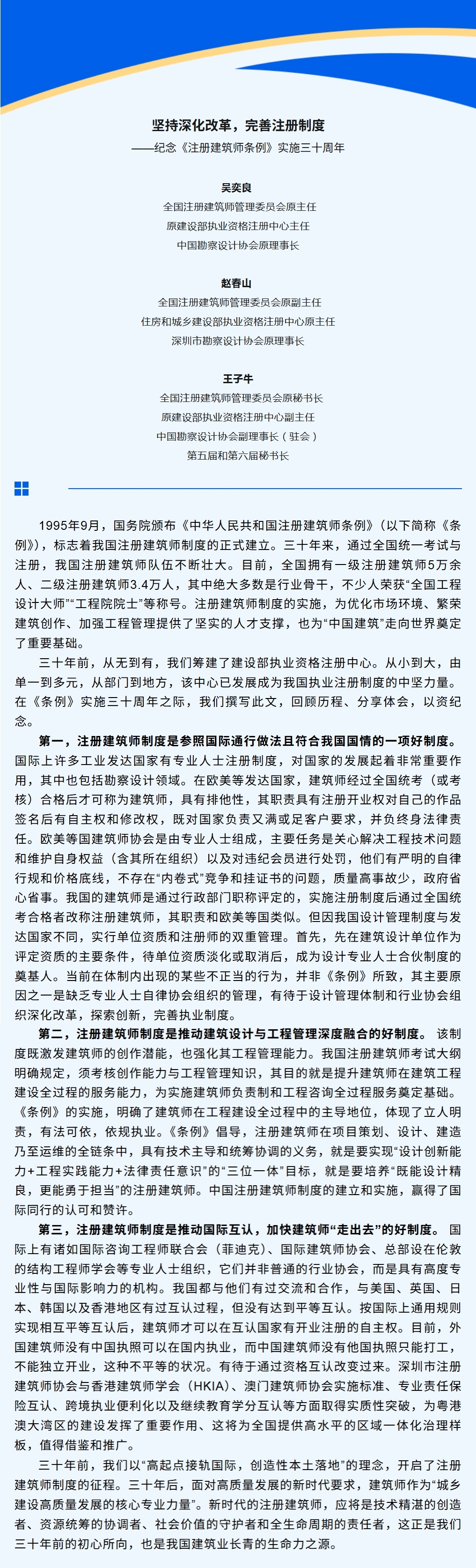 坚持深化改革,完善注册制度——纪念《注册建筑师条例》实施三十周年