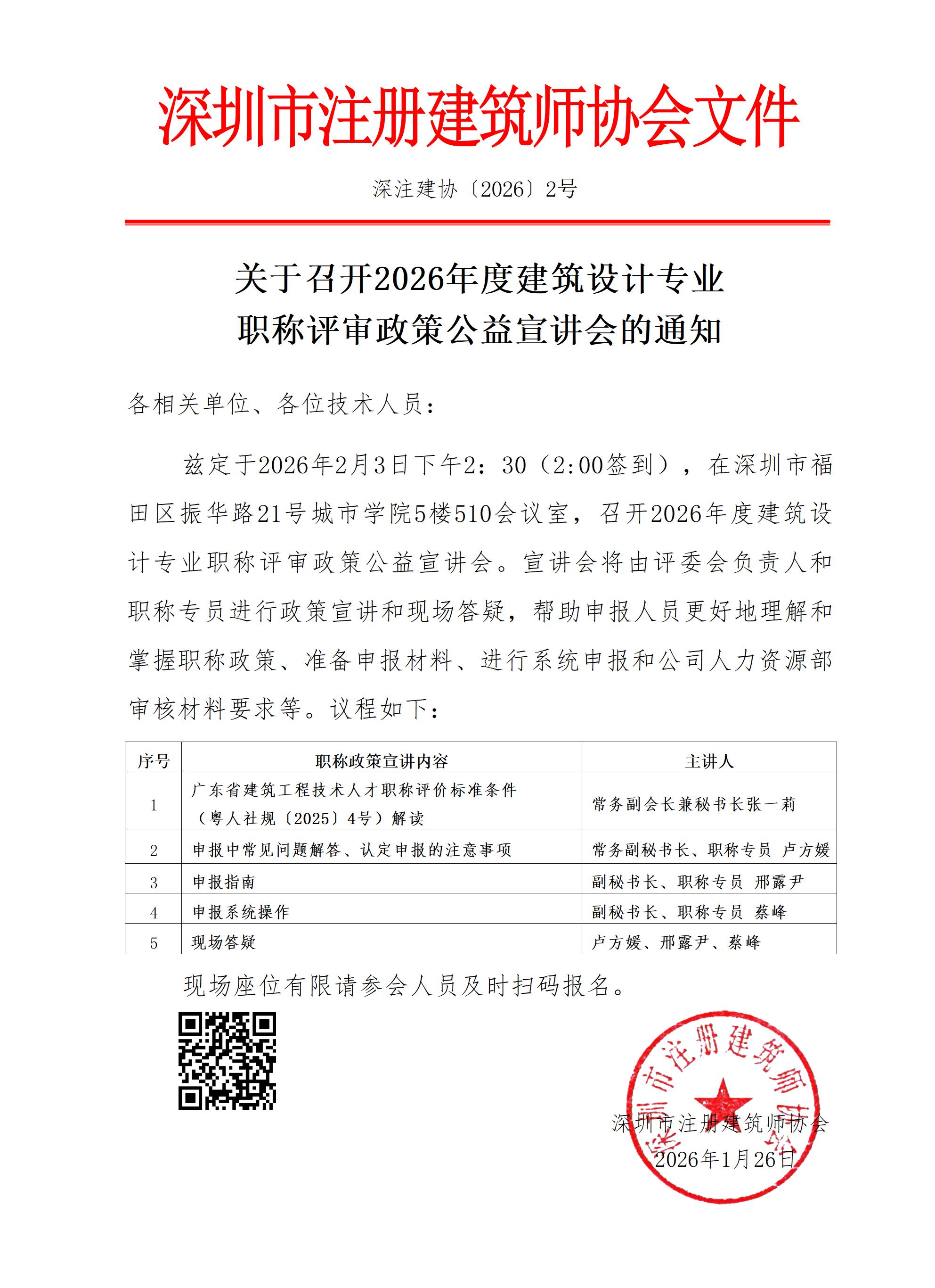 关于召开2026年度建筑设计专业职称评审政策公益宣讲会的通知